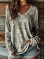 Women's T Shirt Graphic Plants Tribal Vintage Stylish Classic Long Sleeve V Neck Notched Neck Regular Tops Daily Weekend Print Light Grey Spring Fall Winter