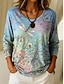 Women's T Shirt Casual Print Regular Tops Daily Blue Sky Blue Spring Fall
