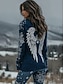 Women's Plus Size T Shirt V Neck Long Sleeve Tunic Graphic Geometric Vintage Basic Ethnic Long Tops Daily Weekend Print Blue Khaki Fall & Winter