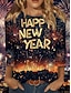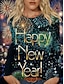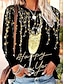 New Year Women's T Shirt Graphic Geometric Vintage Stylish Casual Long Sleeve Crew Neck Round Neck Regular Tops Daily Weekend Print Blue Black Navy Blue Orange Gold Spring Fall Winter