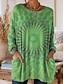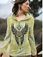 Women's Boho T-shirt Graphic Geometric Abstract Elegant Bohemia Vintage Long Sleeve V Neck Regular Tops Daily Weekend 3D Print Green Summer Spring Fall Winter