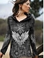 Women's Blouse Tunic Lace Splicing V Neck Long Sleeve Graphic Paisley Plants Round Neck Regular Tops Daily Going out Weekend Lace Patchwork Print Black Spring Fall Prefall