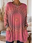 Women's T shirt Long Sleeve Vintage Ethnic Casual Print Long Sleeve Long Tops Crew Neck Daily Red Purple Green Fall Winter Prefall