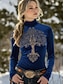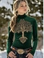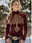 Women's Viking Tree of Life Tunic Tee Floral Graphic Elegant Vintage Fashion Long Sleeve High Neck Regular Tops Daily Going out Weekend Print Black Spring Winter