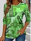 St. Patrick Women's T Shirt Ombre Floral Graphic Elegant Vintage Casual Short Sleeve V Neck Regular Tops Daily Weekend Vacation Wear Print Sage Green Summer