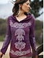 Women's T Shirt Graphic Viking Vintage Bohemia Vintage Fashion Long Sleeve Crew Neck Regular Tops Daily Weekend Print Purple Spring Fall Winter