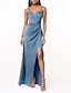 A-Line Bridesmaid Dress V Neck / Spaghetti Strap Sleeveless Elegant Floor Length Charmeuse with Split Front / Ruching