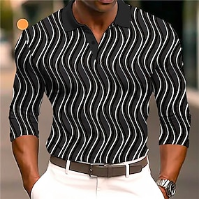 Men's Geometric Polo Long Sleeve Polo Shirts Lapel Business Casual Athleisure Daily Wear 3D Print Buttons Spring Fall Winter Black White Blue