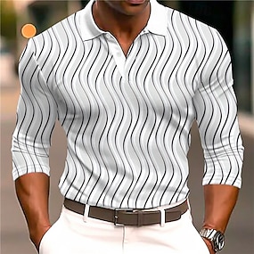 Men's Geometric Line Golf Shirt Long Sleeve Polo Shirts Collared Shirts Casual Business Casual Street Athleisure Outdoor clothing Holiday Buttons 3D Print Spring Fall Winter White Blue Orange