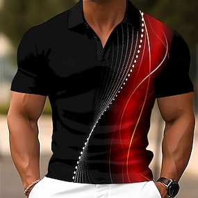 Men's Geometic Line Polo Short Sleeve Polo Shirts Collared Shirts Business Casual Outdoor Athleisure Daily Wear 3D Print Buttons Summer Blue Red Green