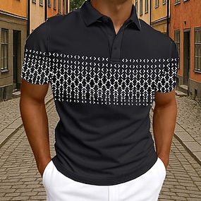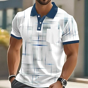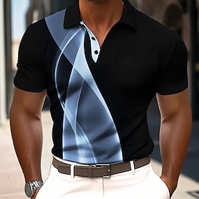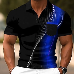 Men's Geometic Line Polo Short Sleeve Polo Shirts Collared Shirts Business Casual Outdoor Athleisure Daily Wear Pocket 3D Print Buttons Summer Blue Black And White Black