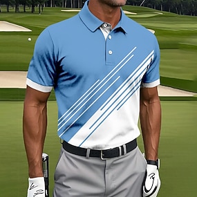 Men's Geometric Line Polo Shirts Short Sleeve Polo Shirts Collared Shirts Casual Athleisure Buttons Summer Spring Blue Black Purple