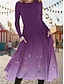 Women's Midi Dress Casual Dress Swing Dress Elegant Fashion Daily Outdoor Weekend Regular Fit Floral Graphic Long Sleeve Crew Neck Blue Yellow Purple Green Spring Fall Winter Autumn