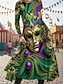 Carnival Men's Mask Polo Long Sleeve Polo Shirts Collared Shirts Vintage Festival Outfit 3D Print Spring Fall Winter Green