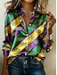 Mardi Gras Women's Shirt Graphic Geometric Abstract Vintage Stylish Modern Long Sleeve Shirt Collar Long Tops Daily Holiday White Yellow Light Purple Purple Green Summer Spring