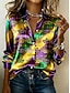 Carnival Women's Shirt Graphic Geometric Abstract Elegant Vintage Stylish Long Sleeve Shirt Collar Regular Tops Daily Work Party Evening Wear Buttons Print Black Yellow Purple Green Spring Fall