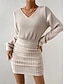 Dam Mini klänning Bodycon Klänning Semiformella klänningar Kontor Normal Slät Långärmad V-hals Svart Vit Rodnande Rosa Vår Höst