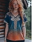 Women's Viking T Shirt Graphic Geometric Tribal Bohemia Vintage Stylish Short Sleeve V Neck Regular Tops Daily Going out Weekend Print Blue Summer Spring