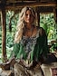 Women's Boho T-shirt Graphic Geometric Abstract Elegant Bohemia Vintage Long Sleeve V Neck Regular Tops Daily Weekend 3D Print Green Summer Spring Fall Winter