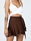 Women's Elegant Midi Mid Waist Skirts Floral Layered Inelastic Party Causal Brown Summer Chiffon