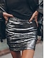 Women's Fashion Casual Mini High Waist Skirts Plain Sequins Stretchy Daily Party Silver Red Dark Gray Spring Polyester