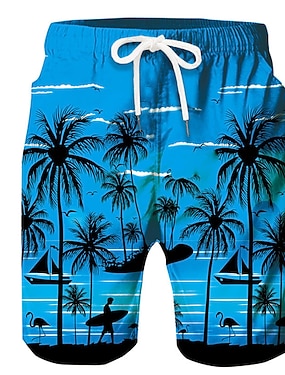Men's Nautical Sailboat Shorts Summer Shorts Casual Shorts Mid Waist Streetwear Hawaiian Retro Vintage Casual Daily Holiday Drawstring Pocket Elastic Waist Designer Clothing Apparel