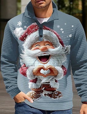 Christmas Men's Santa Claus Reindeer Christmas Costume Shirt Button Up Shirt Long Sleeve Funny Outdoor Holiday Spring Fall Turndown 3D Print Linen Like Shirt White 1 Blue 2# Blue 1# White White 2