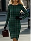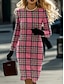 Women's Mini Dress T Shirt Dress Tee Dress Casual Semi Formal Daily Office Regular Fit Geometric Houndstooth Long Sleeve Crew Neck Blue Dark Brown Pink Red Spring Fall Winter