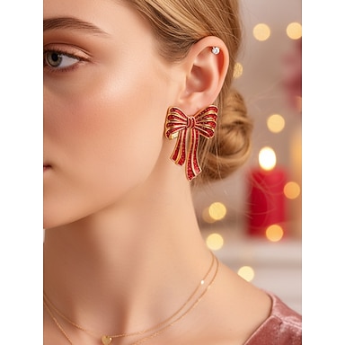 Women's Christmas Earrings with Rhinestone Bow and Pearl Drop, Festive Holiday Jewelry for Party, Wedding and Gift Giving