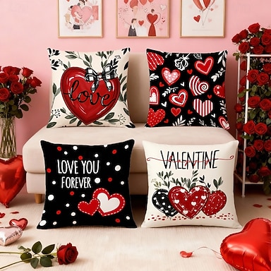 Valentine's Day Pillow Cover Romantic Heart Print Cushion Red Festive Decorative Bedside Pillow for Bedroom Sofa Living Room Holiday Home Decor