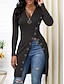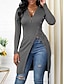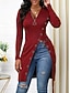 女性用 ブラウス 純色 スタイリッシュ カジュアル 長袖 Vネック ロングトップス 日常 ジッパー ボタン ブラック ワイン パープル グレー 春 秋 冬