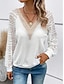 女性用 ブラウス 純色 スタイリッシュ カジュアル 長袖 Vネック レギュラートップス 日常 レース パッチワーク ホワイト 春 秋 冬