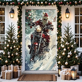 Christmas Door Decorations Door Covers Xmas Motor Santa Door Tapestry Door Curtain Decoration Backdrop Door Banner for Front Door Farmhouse Holiday Party Decor Supplies Indoor/Outdoor