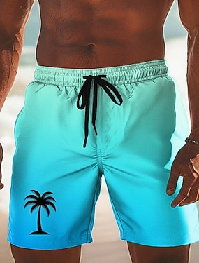 Men's Coconut Tree Gradient Color Tropical Plants Swim Trunks Swim Shorts Board Shorts Mid Waist Hawaiian Beach Vacation Wear Side Pockets Mesh Lining Elastic Drawstring Waist Designer Clothing