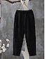 Women's Cotton Linen Pants Slacks Baggy Pants Cropped Pants Solid Classic Ankle-Length Mid Waist Pocket Baggy Elastic Drawstring Design Comfort Breathability Soft Micro-elastic Casual Dailywear Black