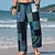 Men's Geometric Color Block Patchwork Trousers Baggy Pants Casual Pants Mid Waist Fashion Home Outdoor Vacation Elastic Drawstring Waist Linen-Like Pants with Pockets Summer Spring 3D Print Blue