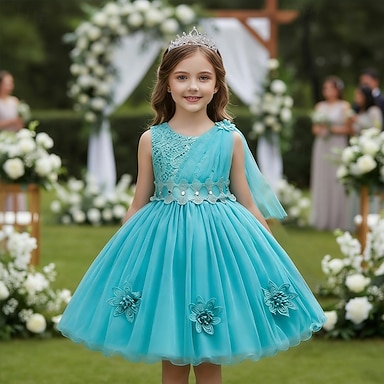 Girls' 3D Solid Color Party Dress Sleeveless Summer Performance Party Birthday Princess Beautiful Sweet Kids 4-12 Years Party Dress Maxi Regular Fit