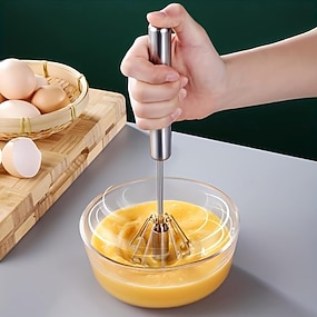 Stainless Steel Egg Whisk Hand Push Rotary Whisk Blender Versatile Milk Frother Hand Push Mixer Stirrer for Blending Whisking Beating & Stirring (33cm/13in)