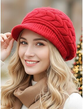 Women's Warm Knit Beret Hat - Soft Cable Knit, Stylish & Cozy, Perfect for Christmas and Winter Fashion, Available in Multiple Colors