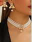 Women's Pearl Bee Jewelry Set - Elegant Multi-Layer Choker Necklace and Drop Earrings with Gold-Tone Insect Design for Parties, Weddings and Vintage Fashion Looks