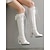 Women's White Faux Leather Knee-High Boots with Block Heel – Elegant Square Toe Stylish Footwear for Winter, Fall, and Formal Occasions