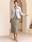 Two Piece Sheath / Column Dress Sets Mother of the Bride Dress Elegant Tailored Crew Neck Tea Length Woolen Sleeveless Short Jacket Skirts with Flower