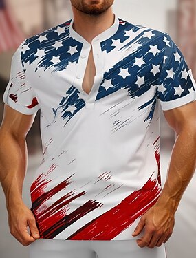 Men's American US Flag 4th of July U.S. 250th Anniversary Shirt Button Down Shirt Short Sleeve Fashion Casual Streetwear Vacation Beach Wear Summer Spring Standing Collar Henley Collar White