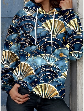 Women's Hoodie Pullover Sweatshirt Oversized Long Sleeve Casual Graphic Warm Active Hooded Regular Tops Street Dailywear Print Navy Blue Spring Fall Winter