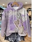 Women's Zip Up Hoodies Fleece Lined Floral Graphic Geometric Elegant Warm Punk Long Sleeve Hooded Long Tops Home Work Party Evening Wear Patchwork Print Purple Spring Fall Winter