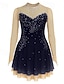 Платье для фигурного катания Жен. Девочки Катание на коньках Платья Светло-синий Черный Белый Пэчворк Сетка Эластичность Соревнование Одежда для фигурного катания Украшенный драгоценностями Стразы