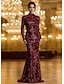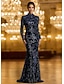 Mořská panna Večerní šaty Elegantní Formální šaty Formální Svatební Dlouhá vlečka Dlouhý rukáv Stojáček Samet s Třpytky Flitry 2025