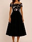 Mořská panna Koktejl Šaty Elegantní Formální šaty Formální Svatební K lýtkům Krátký rukáv Do V Krajka s Sklady 2025