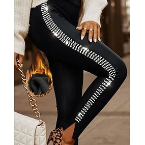 Women's Chinos Tights Leggings Vacation Fashion Streetwear Full Length Medium Waist Plain Elastic Waist Hot Drilling Warm Comfortable Micro-elastic High Elasticity Formal Outdoor Vacation Black