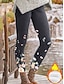 Women's Slacks Leggings Cozy Leggings Vacation Vintage Streetwear Ankle-Length Natural Floral Graphic Flower Elastic Waist Print Thermal Warm Comfy Comfortable Stretchy Vacation Home Daily Black Fall